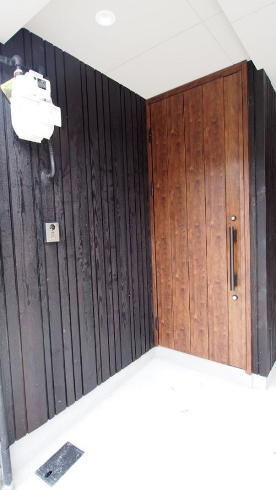 黒い焼き板の外観とのコントラストが美しく、見た目にも落ち着きと上質感を演出します。
