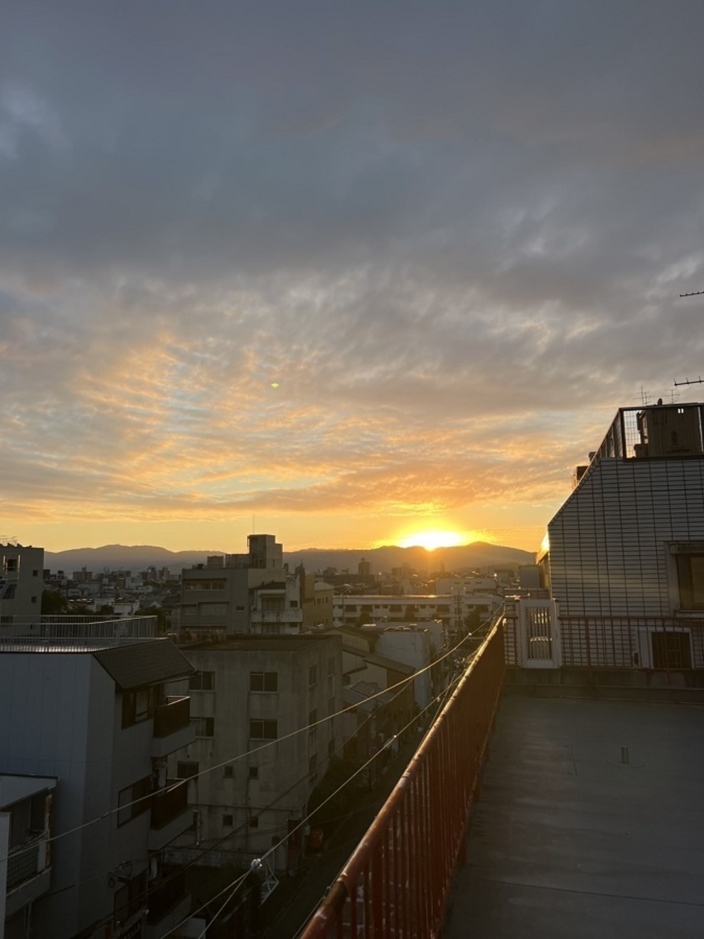 写真は事務所ビルの屋上からの夕日です。秋の空はとてもきれいですね*