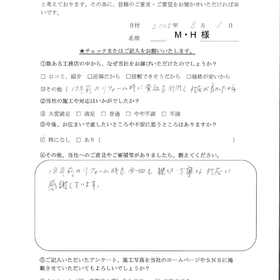 A.18年前のリフォーム時も今回も親切・丁寧な対応に感謝しています。